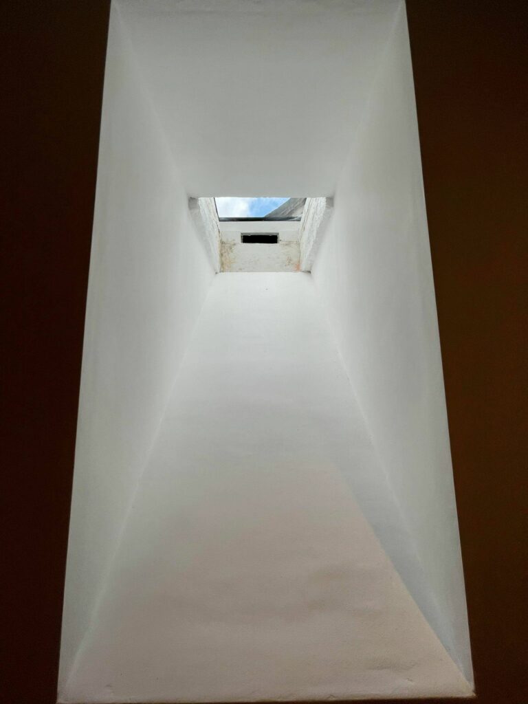 Coal cellars are great for storing coal, but they are by design dark spaces without natural light, and they certainly weren’t designed for living in, even in Victorian times. To make the cellar habitable, it needed natural light, and a rooflight was the obvious answer. But this coal chute was surrounded by a brick wall, and the rooflight needed to be mead to fit the exact measurements as well as abut against the brick wall.